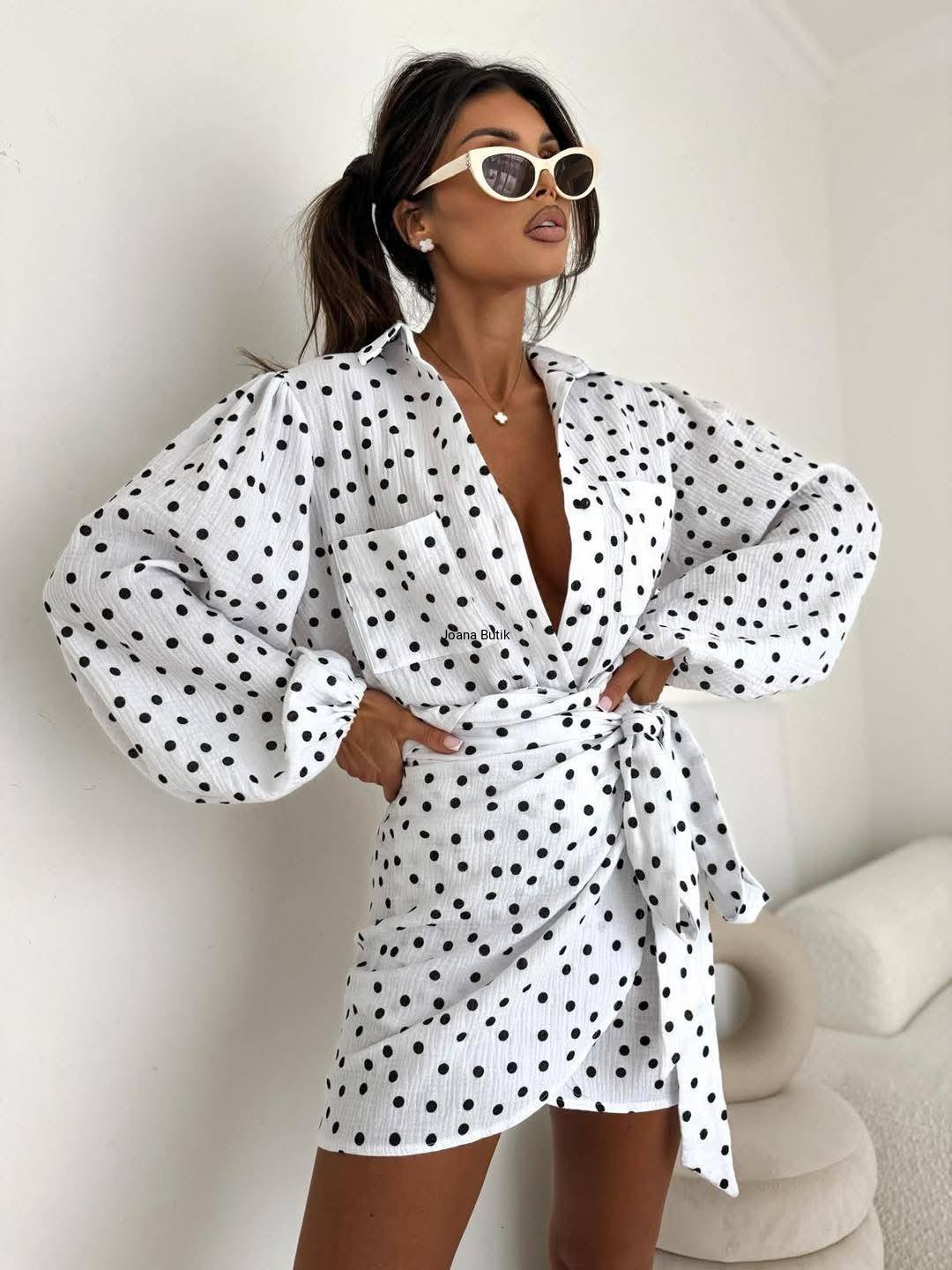 Bawełniany komplet w kropki koszula i wiązana spódniczka Megi B