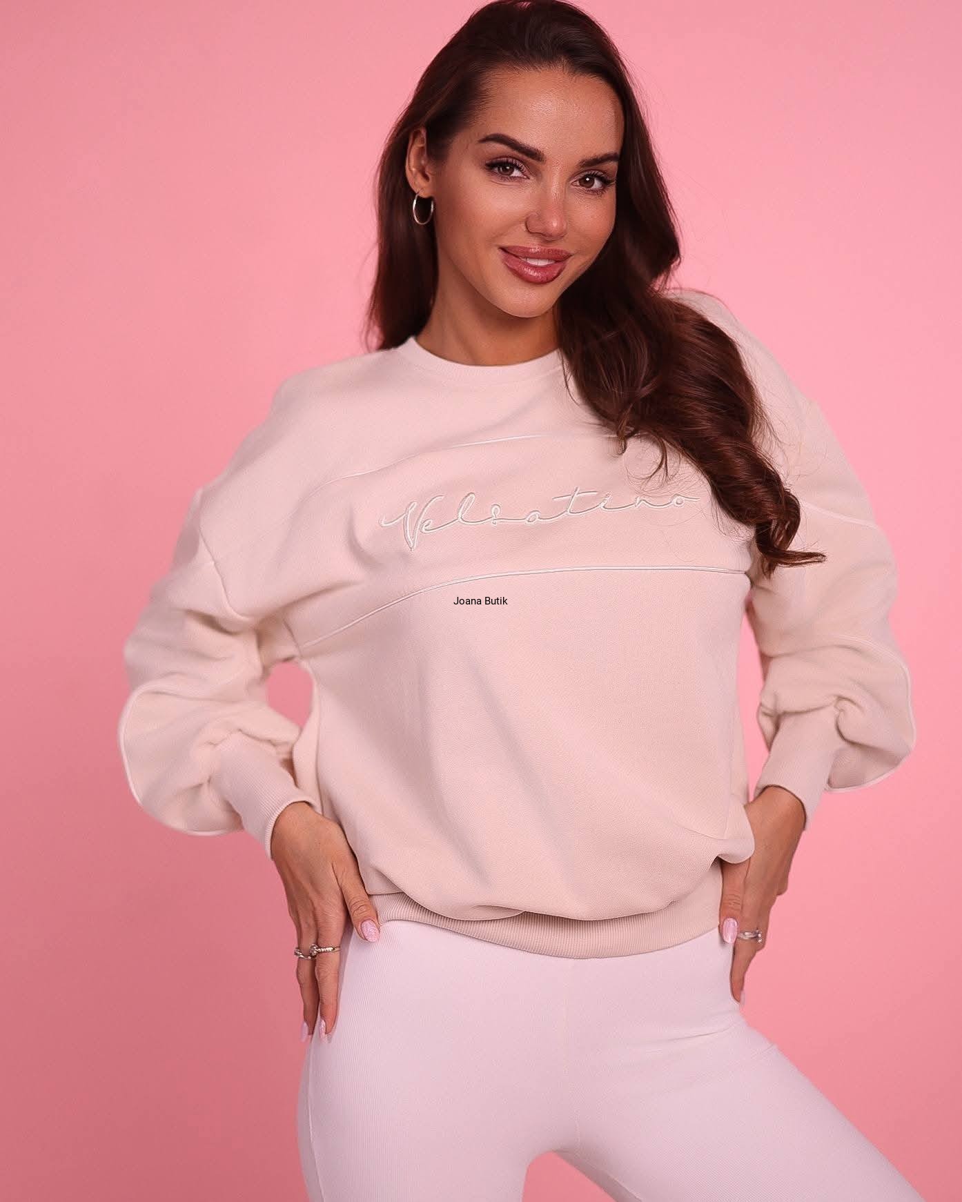Niezwykle stylowa bluza bez kaptura o kimonowym fasonie z obniżoną linia ramion. Wykończona ściagaczem. Na przodzie posiada delikatna naszywkę. Na rękawach posiada modne przeszycia i efektowny haft. Wykończona ściągaczami. Idealnie sprawdzi się do codziennych stylizacji. Najmodniejszy hit sezonu. Must have w każdej szafie! Świetna jakość, polska produkcja. Wymiary: S/M Szerokość od pachy do pachy: 76 cmx2 Długość rękawa: 74 cm Długość całkowita: 60 cm Skład: 95% bawełna, 5% elastan