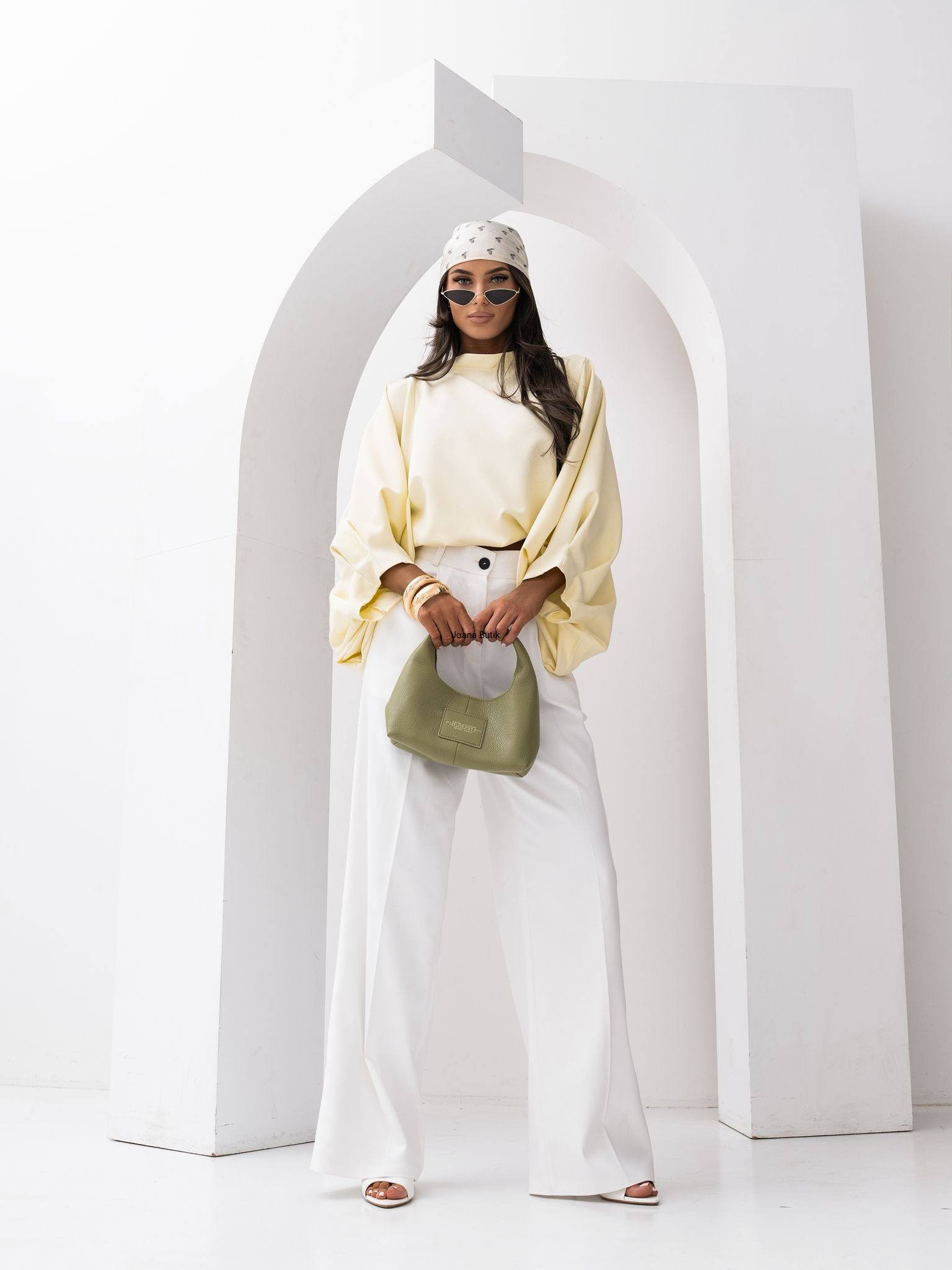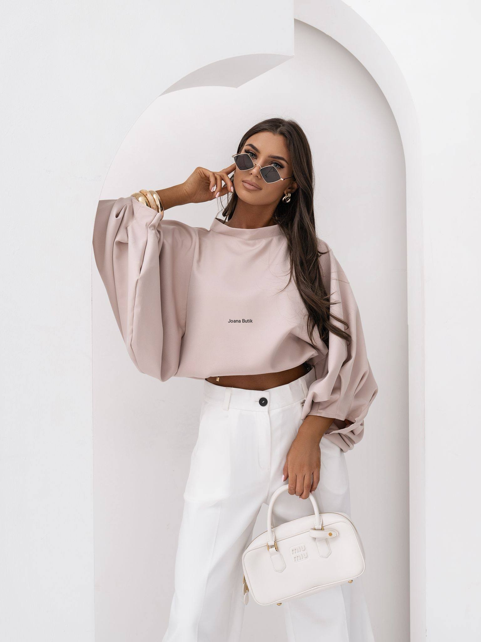 Bluzka Amelia firmy Lavestino. Bluzka o luźnym kroju kimono z szerokimi rękawami. Regulowana w pasie złotymi stoperami, dzięki czemu dopasowuje się do każdej sylwetki. Kobieca, wygodna i uniwersalna – idealna na co dzień i na wyjścia. Oryginalny produkt polskiej firmy Lavestino Skład: 85% tencel, 15% poliester Rozmiar uniwersalny długość rękawa od dekoltu 56cm długość rękawa od pachy 50cm szerokość między pachami 58cm x2 szerokość na dole 58cm x2 długość 60cm