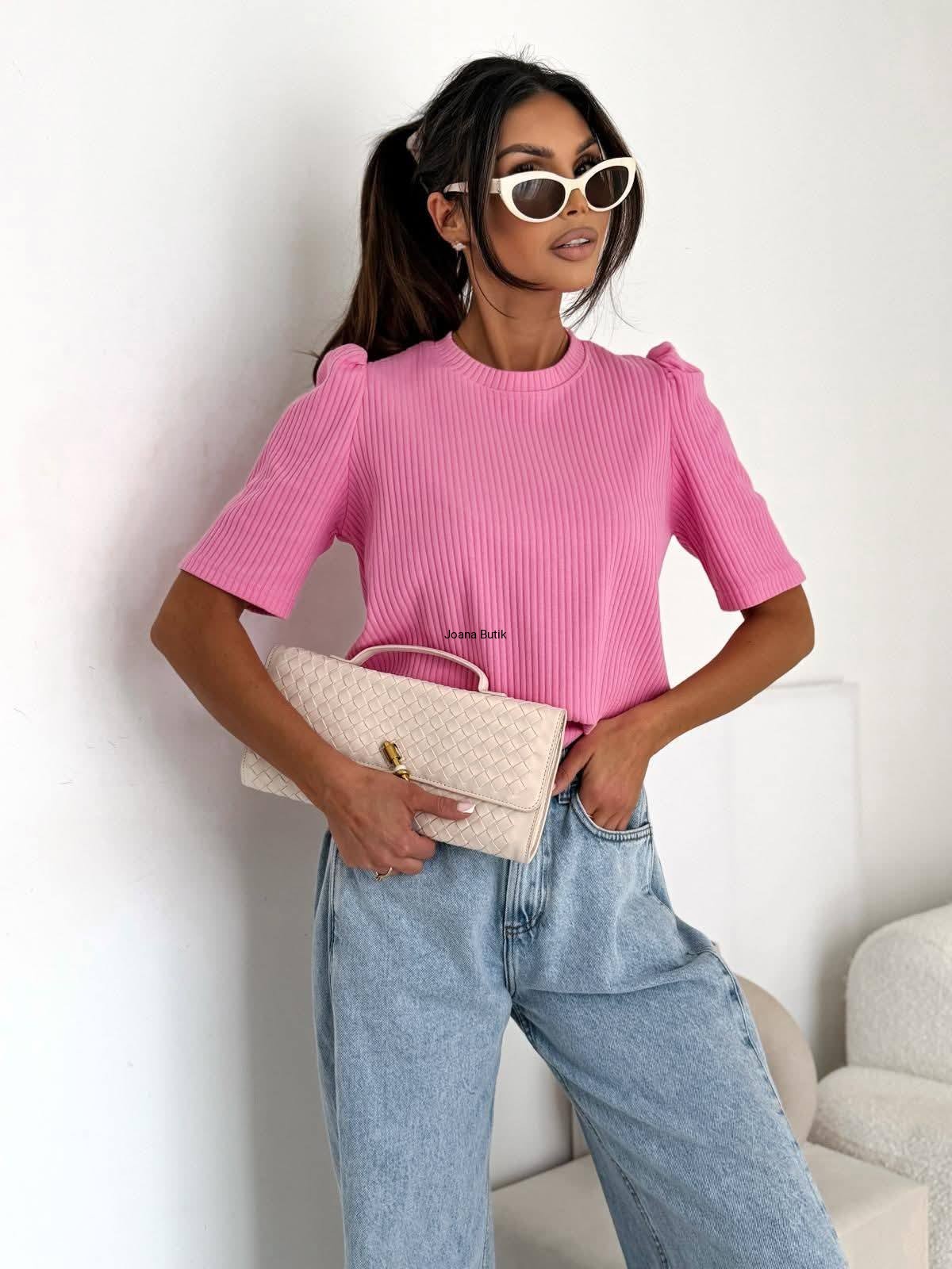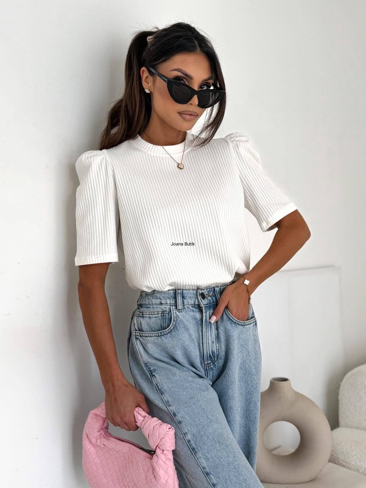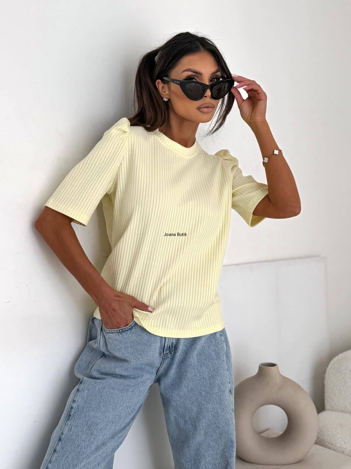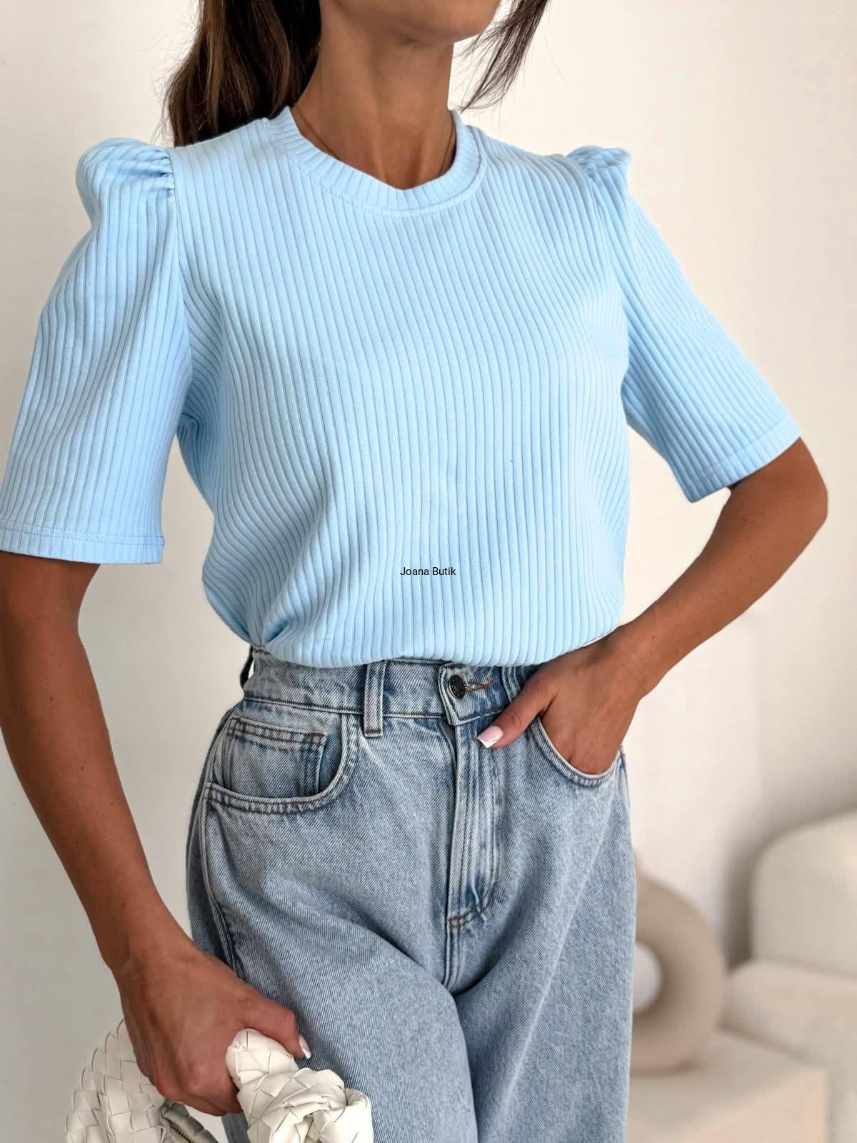 Bluzka prążek z bufkami Bocca