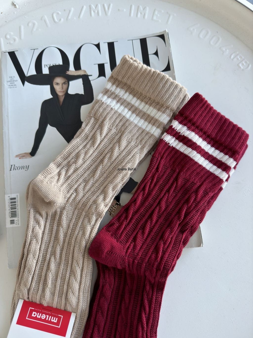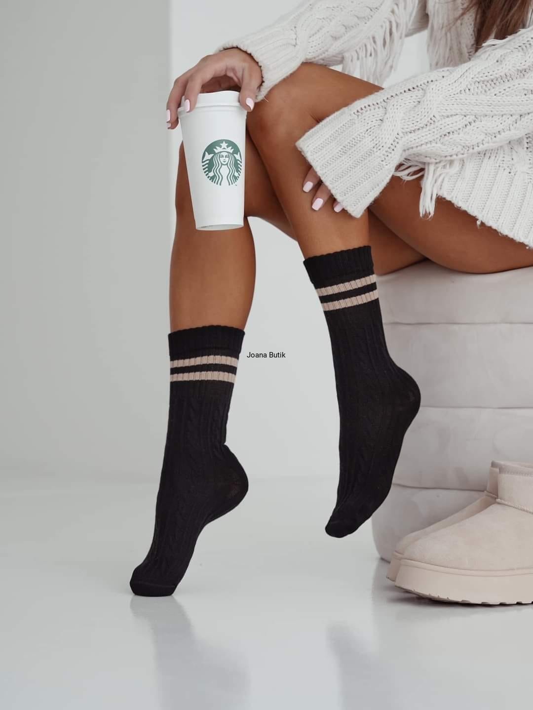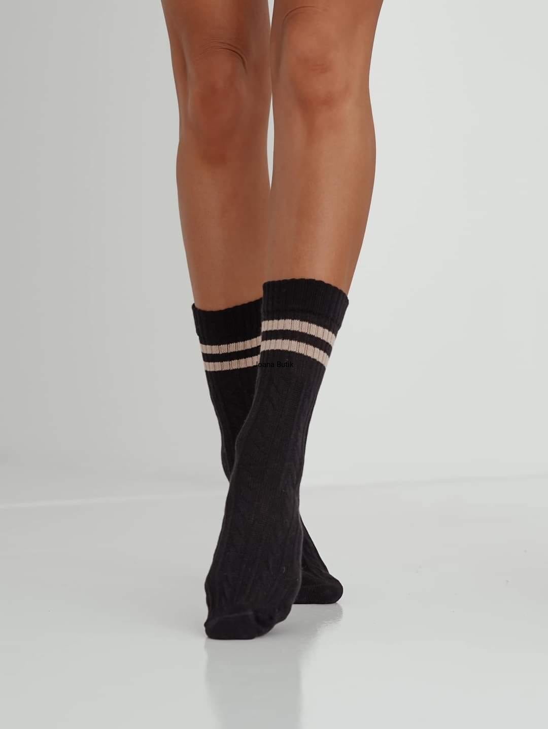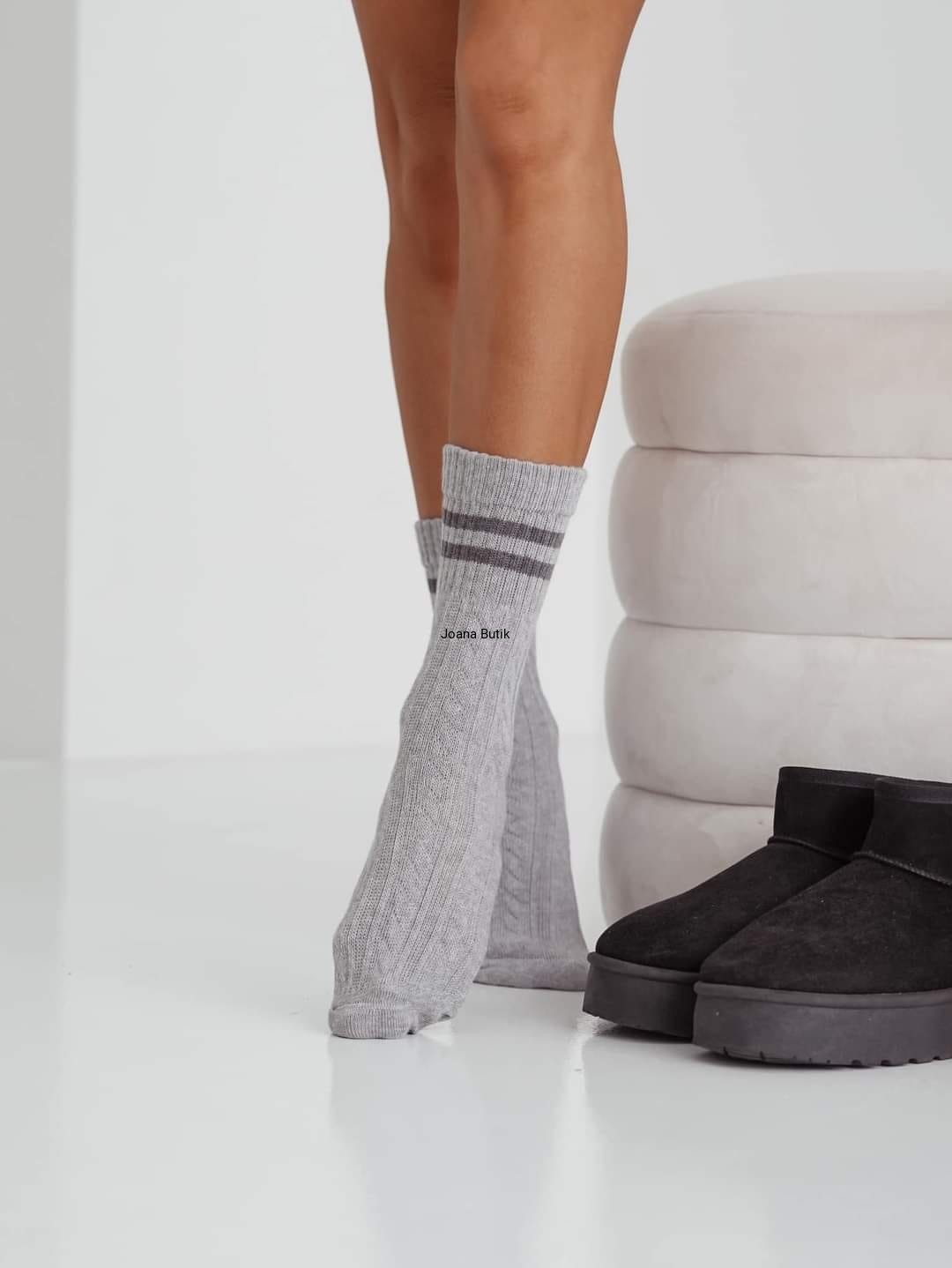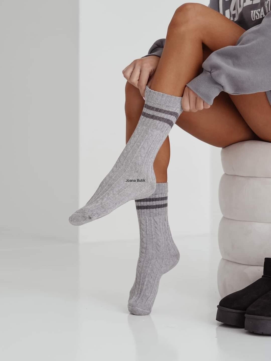 Ciepłe skarpety warkocz z paskami Milena
