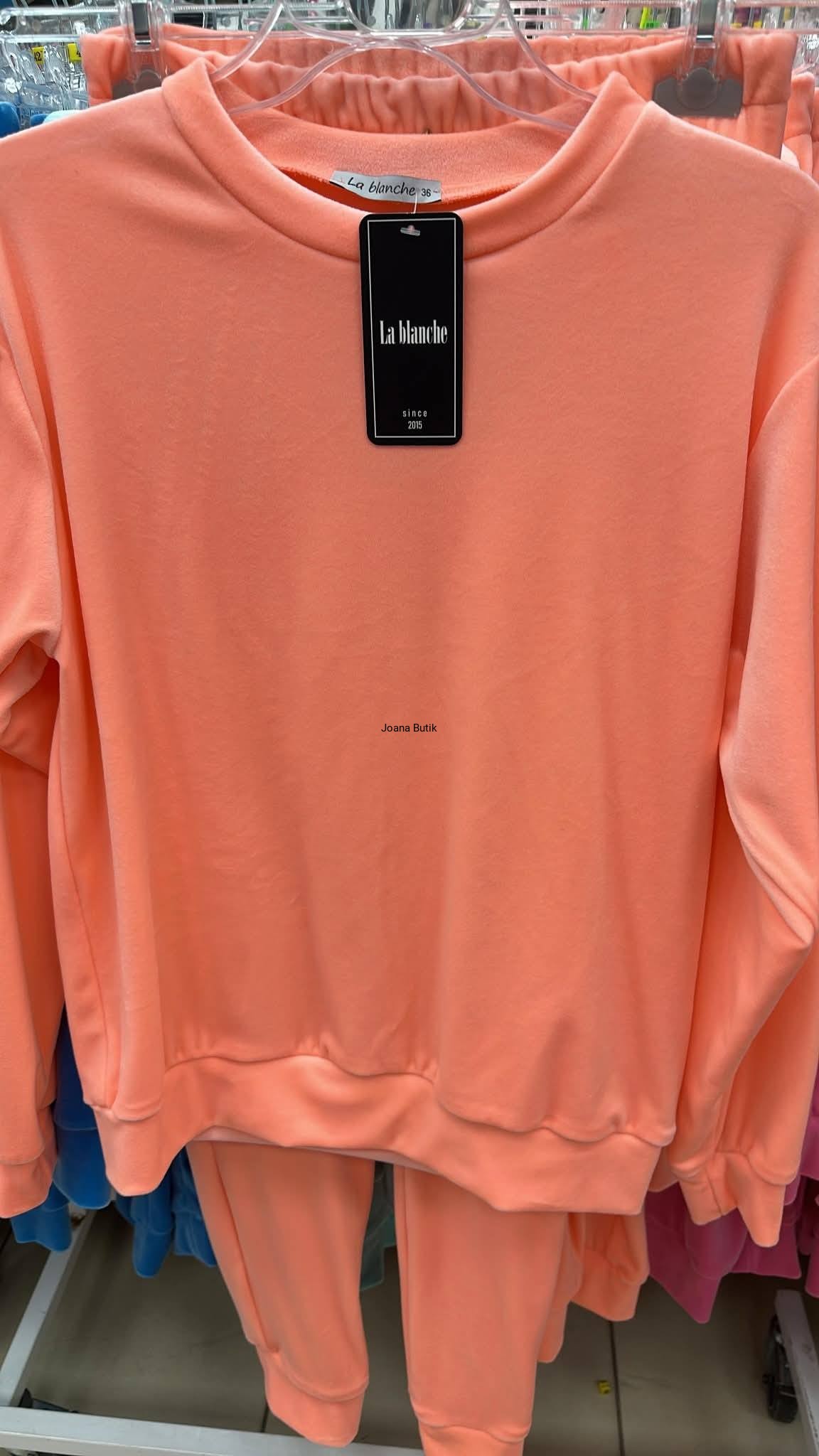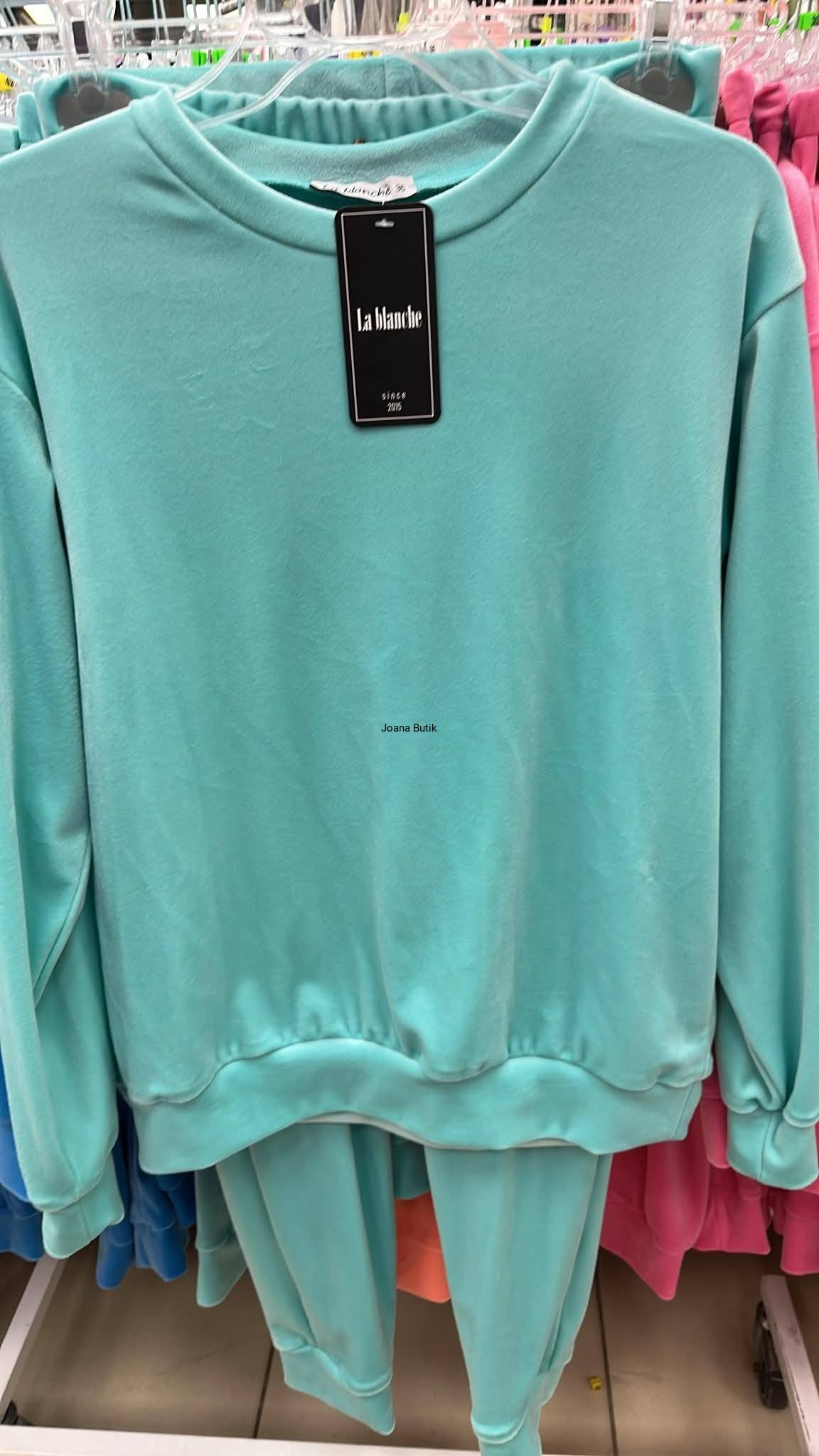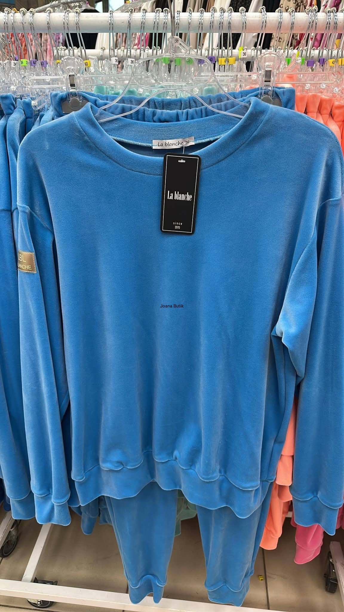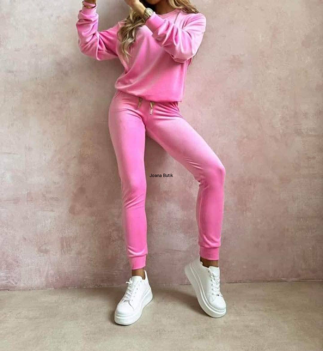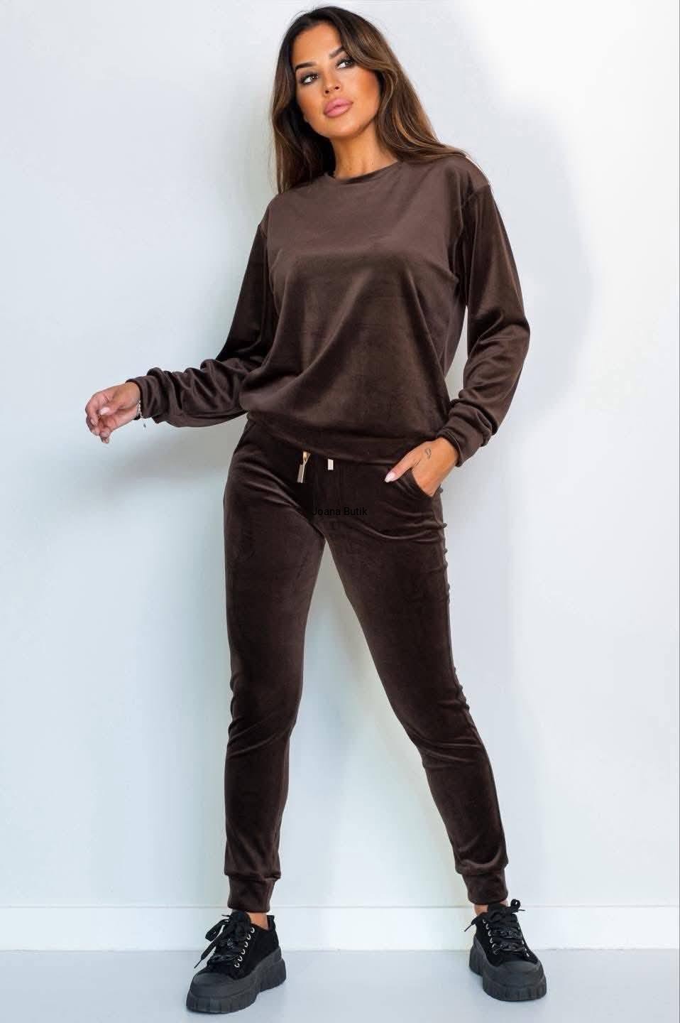 Welurowy komplet, wykonany z gładkiego i aksamitnego w dotyku materiału. Model posiada ściągacze przy nogawkach i rękawach oraz funkcjonalne, wkładane kieszenie po bokach w przedniej części spodni. W pasie znajduje się gumka z ozdobną, satynową tasiemką. Bluza wyróżnia się naszywką w złotym kolorze, która znajduje się na jednym z rękawów. Ten model najlepiej zaprezentuje się w luźnym wydaniu, w zestawieniu ze sportowym obuwiem. Produkt dostępny jest w wielu wersjach kolorystycznych. Bluza: * materiał elastyczny * zaokrąglony dekolt * naszywka na rękawie z logotypem * ściągacz w rękawach i na dole Spodnie: * materiał elastyczny * delikatna w dotyku tkanina * ściągacz w pasie z ozdobną tasiemką * kieszenie po bokach * nogawki zakończone ściągaczem p>Wymiary: 36/S Bluza: Dł. całkowita - 61 cm Szer. w ramionach - 47 cm Szer. od pachy do pachy - 53 cm Szer. w talii - 51 cm Szer. na dole - 43 cm Dł. rękawa od ramienia - 57 cm Dł. rękawa od pachy - 50 cm Szer. w bicepsie - 22 cm Spodnie: Dł. całkowita - 98 cm Dł. nogawki od kroku - 72 cm Wys. stanu przód - 26 cm Wys. stanu tył - 32 cm Szer. w pasie - 30-47 cm Szer. w biodrach - 40 cm Szer. w udzie - 23 cm Szer. nogawki na dole - 11 cm 38/M Bluza: Dł. całkowita - 62 cm Szer. w ramionach - 48 cm Szer. od pachy do pachy - 55 cm Szer. w talii - 53 cm Szer. na dole - 45 cm Dł. rękawa od ramienia - 57 cm Dł. rękawa od pachy - 50 cm Szer. w bicepsie - 22 cm Spodnie: Dł. całkowita - 98 cm Dł. nogawki od kroku - 72 cm Wys. stanu przód - 26 cm Wys. stanu tył - 32 cm Szer. w pasie - 31-49 cm Szer. w biodrach - 42 cm Szer. w udzie - 23 cm Szer. nogawki na dole - 11 cm 40/L Bluza: Dł. całkowita - 63 cm Szer. w ramionach - 49 cm Szer. od pachy do pachy - 58 cm Szer. w talii - 55 cm Szer. na dole - 48 cm Dł. rękawa od ramienia - 57 cm Dł. rękawa od pachy - 50 cm Szer. w bicepsie - 23 cm Spodnie: Dł. całkowita - 98 cm Dł. nogawki od kroku - 72 cm Wys. stanu przód - 26 cm Wys. stanu tył - 32 cm Szer. w pasie - 32-51 cm Szer. w biodrach - 45 cm Szer. w udzie - 24 cm Szer. nogawki na dole - 12 cm 42/XL Bluza: Dł. całkowita - 64 cm Szer. w ramionach - 50 cm Szer. od pachy do pachy - 60 cm Szer. w talii - 57 cm Szer. na dole - 50 cm Dł. rękawa od ramienia - 57 cm Dł. rękawa od pachy - 50 cm Szer. w bicepsie - 23 cm Spodnie: Dł. całkowita - 98 cm Dł. nogawki od kroku - 72 cm Wys. stanu przód - 26 cm Wys. stanu tył - 32 cm Szer. w pasie - 33-53 cm Szer. w biodrach - 47 cm Szer. w udzie - 24 cm Szer. nogawki na dole - 12 cm