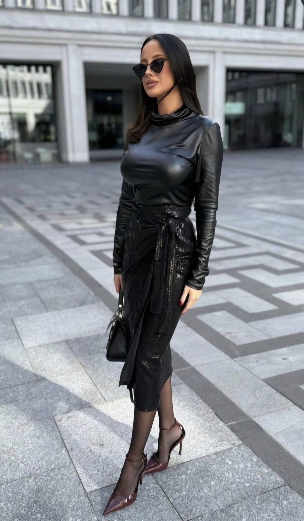 Skład: 100% poliester Wykończenie z eko skóry, dopasowany krój. Zwężenie przy dekolcie. Zapięcie regulowane suwakiem z tyłu. Wymiary XS: Długość całkowita: 54 cm Obwód w biuście: od 80 cm do 100 cm Długość rękawa od pachy: 54 cm Wymiary S: Długość całkowita: 55 cm Obwód w biuście: od 90 cm do 110 cm Długość rękawa od pachy: 55 cm Wymiary M: Długość całkowita: 56 cm Obwód w biuście: od 100 cm do 120 cm Długość rękawa od pachy: 56 cm Ubrania mierzone na płasko! Poszczególne wymiary mogą różnić się +/-2 cm. Produkt polski.