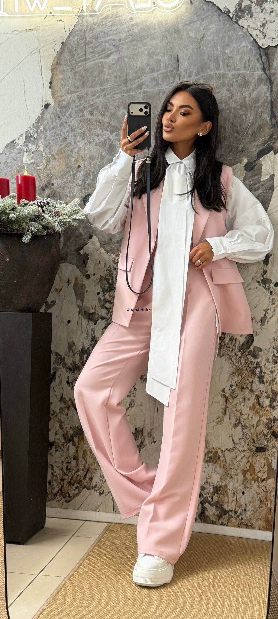 Długa kamizelka o nowoczesnym kroju, zaprojektowana z myślą o kobietach ceniących styl i wyraziste detale. Model z poduszkami na ramionach, które pięknie podkreślają linię sylwetki i dodają charakteru całej stylizacji. Wycięte boki nadają lekkości oraz subtelnie eksponują talię, tworząc niezwykle kobiecy efekt. Kamizelka posiada pełną podszewkę, dzięki czemu doskonale układa się na ciele i zapewnia komfort noszenia. Całość uzupełniają ozdobne patki po bokach, stanowiące modny akcent i podkreślające designerski charakter modelu. Idealna zarówno do eleganckich stylizacji z koszulą i spodniami, jak i w nowoczesnych zestawach casualowych. Doskonały wybór na co dzień, do pracy oraz na specjalne okazje. Rozmiar: uniwersalny Wymiary: długość całkowita: 74 cm szerokość pod pachami: 38 cm x2 szerokość na dole: 40 cm x2 Skład z metki: 70% wiskoza, 30% poliester