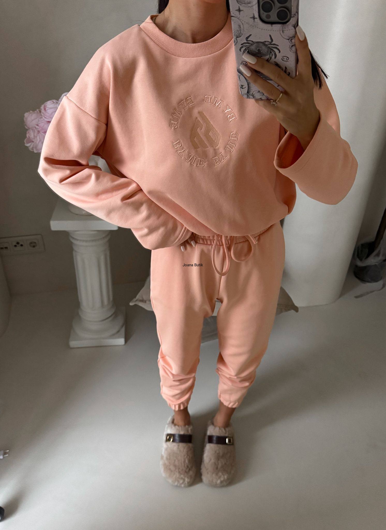 Komplet Louis składający się z bluzy o luźnym kroju, z długim rękawem z troczkiem regulującym długość oraz logowaniem na środku. Spodnie mają gumki na nogawkach i w pasie oraz dwie wbudowane kieszenie. Skład: 100% bawełna BLUZA Wymiary XS: Obwód w biuście: 106 cm Długość całkowita: 52 cm Długość rękawa od pachy: 49 cm Wymiary S: Obwód w biuście: 110 cm Długość całkowita: 53 cm Długość rękawa od pachy: 50 cm Wymiary M: Obwód w biuście: 114 cm Długość całkowita: 54 cm Długość rękawa od pachy: 51 cm Wymiary L: Obwód w biuście: 118 cm Długość całkowita: 55 cm Długość rękawa od pachy: 52 cm SPODNIE Wymiary XS: Długość całkowita: 98 cm Wysokość stanu: 30 cm Obwód w pasie: od 62 cm do 76 cm Obwód w biodrach: od 100 cm do 110 cm Wymiary S: Długość całkowita: 99 cm Wysokość stanu: 31 cm Obwód w pasie: od 64 cm do 78 cm Obwód w biodrach: od 104 cm do 114 cm Wymiary M: Długość całkowita: 100 cm Wysokość stanu: 32 cm Obwód w pasie: od 66 cm do 80 cm Obwód w biodrach: od 108 cm do 118 cm Wymiary L: Długość całkowita: 101 cm Wysokość stanu: 33 cm Obwód w pasie: od 68 cm do 82 cm Obwód w biodrach: od 112 cm do 122 cm Modelka Asia wymiary: TALIA: 68cm BIODRA:96cm Modelka Ada wymiary: TALIA: 66cm BIODRA:93cm Ubrania mierzone na płasko! Poszczególne wymiary mogą różnić się +/- 2 cm.