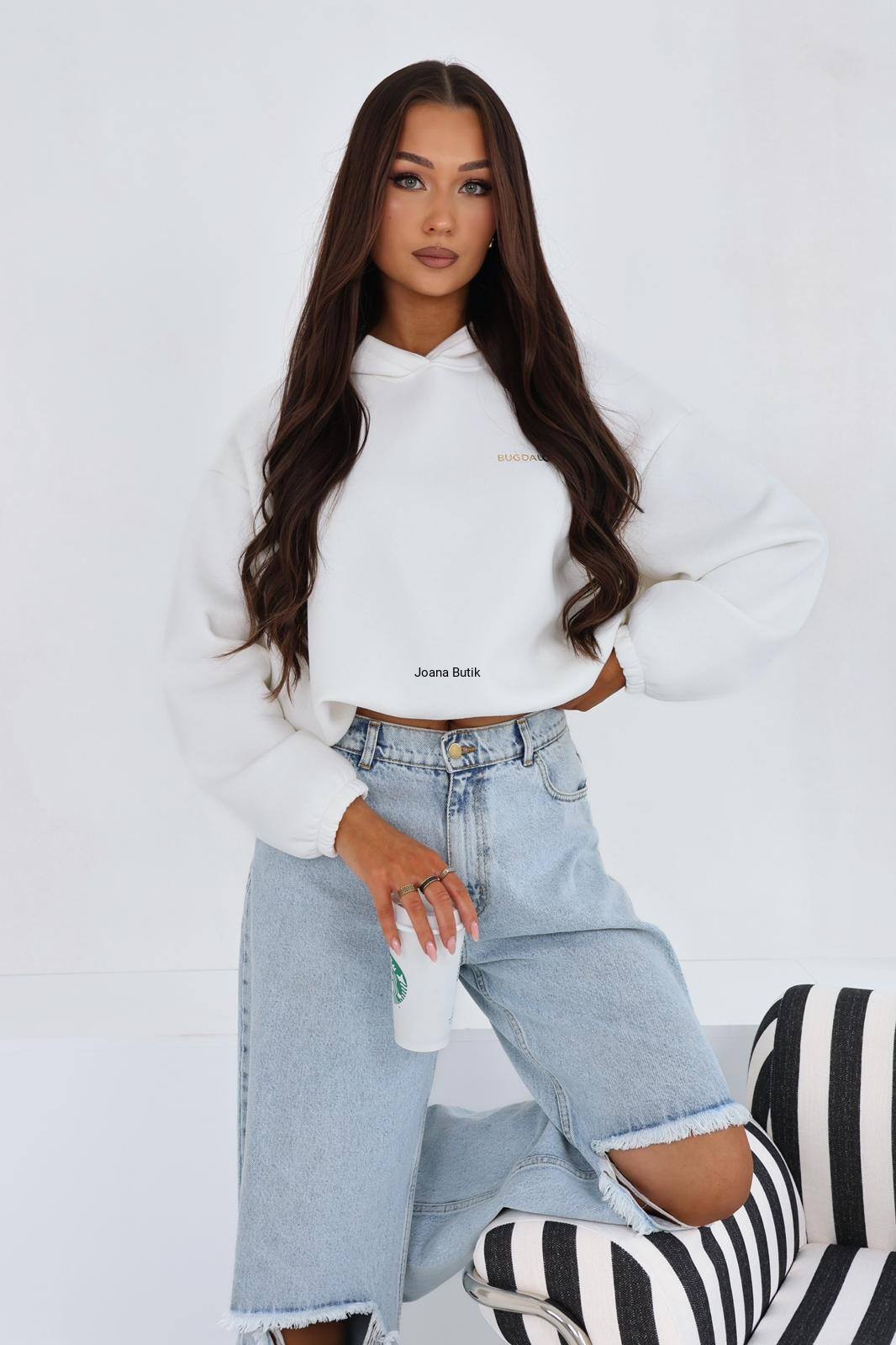 Stylowa bluza oversize wykonana z miękkiej, wysokiej jakości dzianiny, która zapewnia komfort i wygodę w każdej sytuacji. Model posiada obszerny kaptur, elastyczne ściągacze przy rękawach oraz regulowany troczek u dołu, dzięki czemu możesz dopasować fason do swojej sylwetki. Z przodu subtelny nadruk, a z tyłu duży napis nadają całości nowoczesnego charakteru. Idealna propozycja na co dzień, do sportowych i casualowych stylizacji. Skład : 95 procent bawełna,5 procent elastan