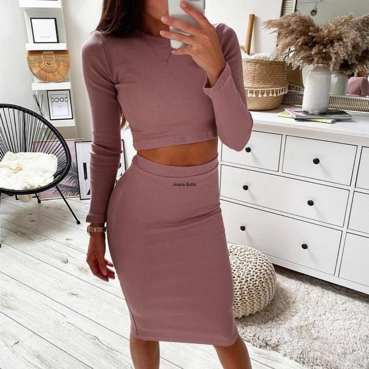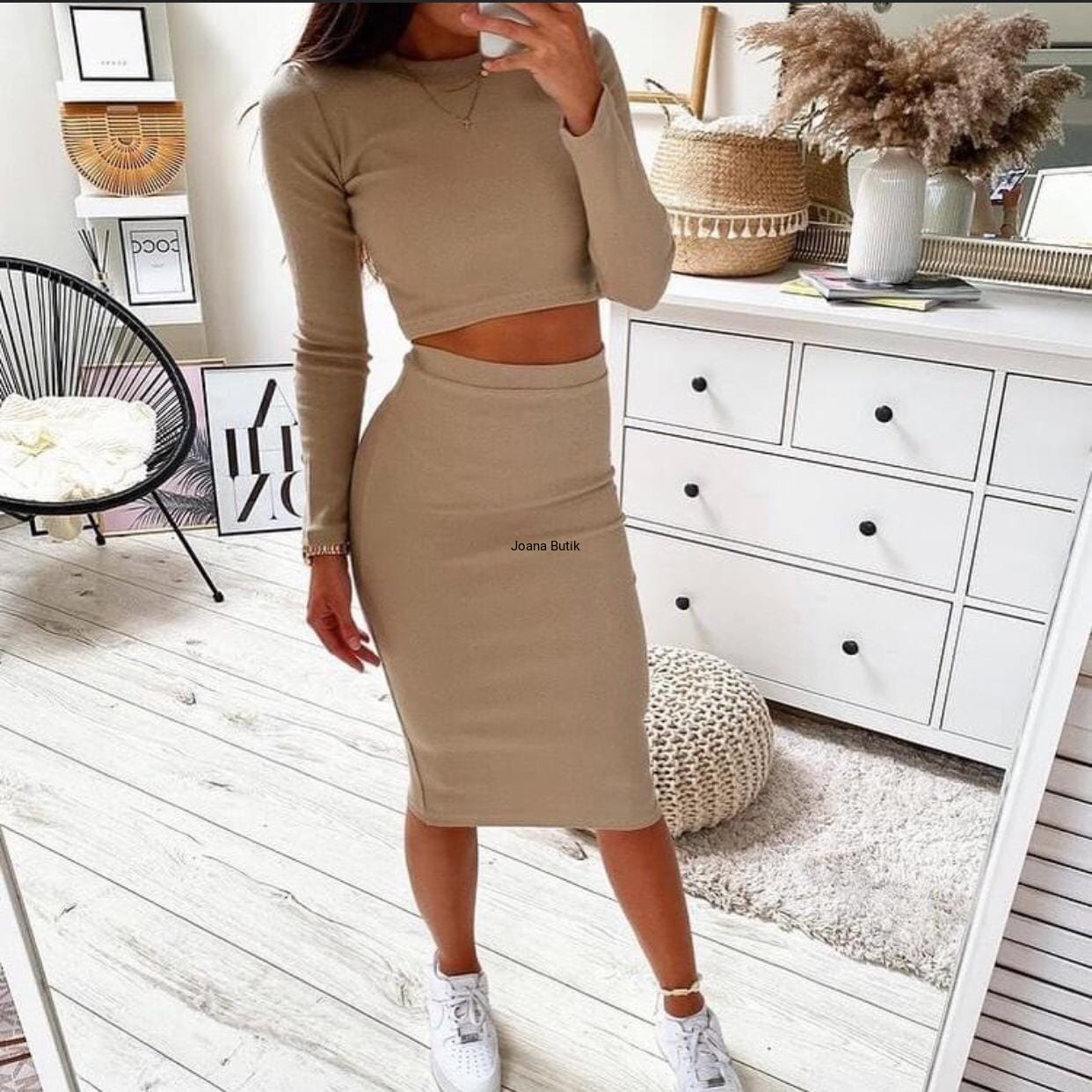 Cudowny komplet spódnica ołówkowa i top PATI BASIC, kolejny bestseller marki Lila Lou. Świetnie sprawdza się w sportowych i wieczorowych stylizacjach. Fason podkreślający sylwetkę, niezwykle kobieca propozycja. Wymiary długość całkowita spódnica-66 cm długość całkowita bluzka -36cm długość rękawa-59cm biust-31cm biodra-30cm Zapraszam do obserwowania nas na FB Joana Butik