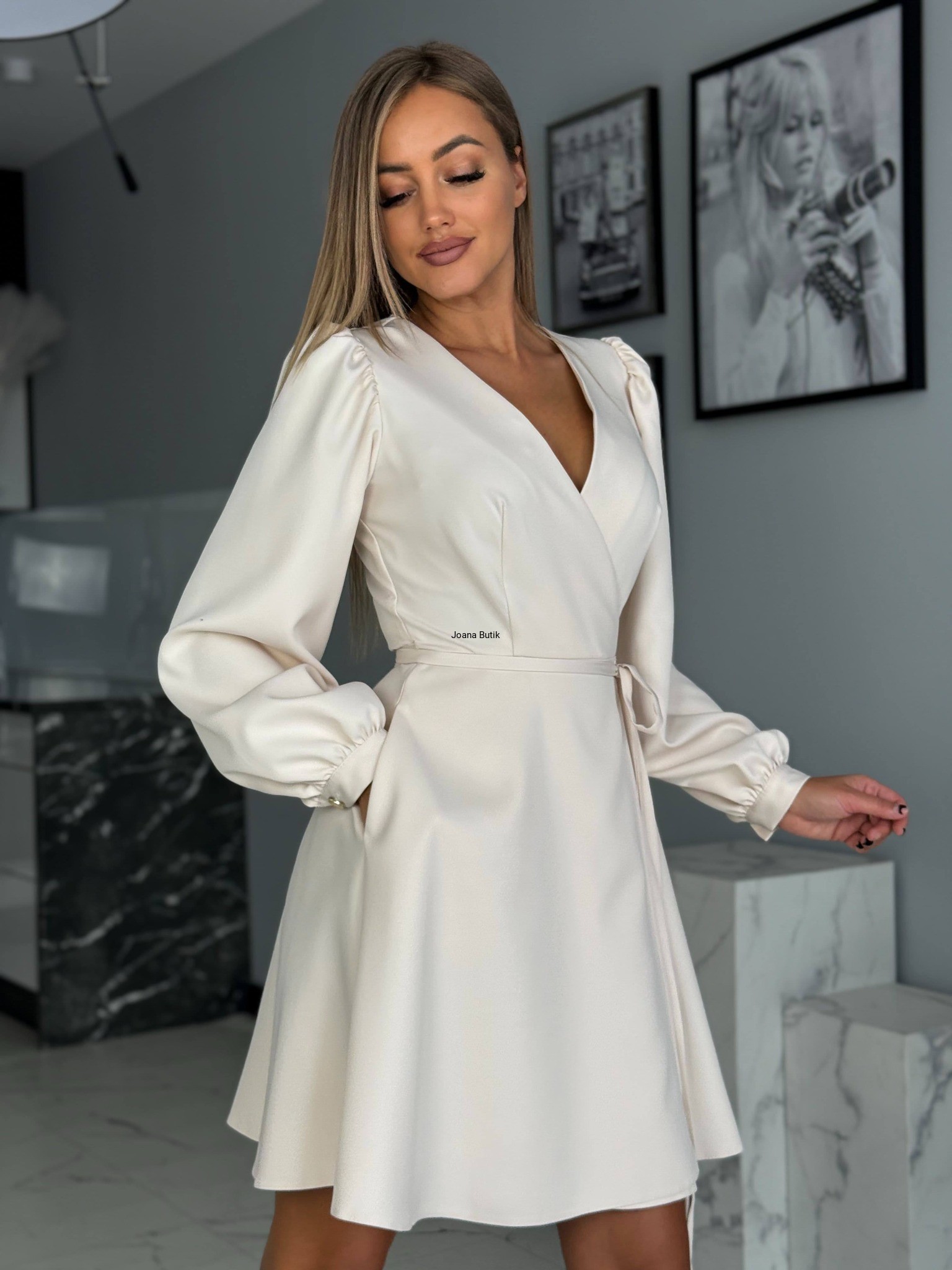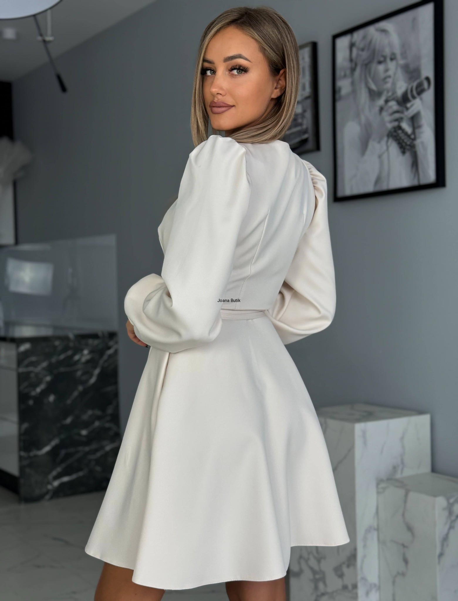Klasyczna a zarazem subtelna sukieneczka w wersji mini. Sukieneczka jest regulowana od środka i od zewnątrz paskami, posiada boczne kieszenie, rozszerzona ku dołowi. Pięknie układa się w tańcu. Sukienka świetnie się sprawdzi na chrzciny, kuminie, wesele czy też codzienne wyjścia. Wymiary Sukienka jest mierzona na maksymalnym związaniu które Można regulować Rozmiar XS/34 szerokość pachy 37 cm x2 szerokość w talii 27 cm x2 długość całkowita 85 cm długość rękawa od wew. 47 cm Rozmiar S/36 szerokość pachy 39 cm x2 szerokość w talii 29 cm x2 długość całkowita 85 cm długość rękawa od wew. 47 cm Rozmiar M/38 szerokość pachy 41 cm x2 szerokość w talii 31 cm x2 długość całkowita 86 cm długość rękawa od wew. 48 cm Rozmiar L/40 szerokość pachy 43 cm x2 szerokość w talii 33 cm x2 długość całkowita 87 cm długość rękawa od wew. 48 cm Rozmiar XL/42 szerokość pachy 43 cm x2 szerokość w talii 33 cm x2 długość całkowita 87 cm długość rękawa od wew. 48 cm wymiary są podawane na płasko +/- 2 cm skład 80% bawełna 20% poliester