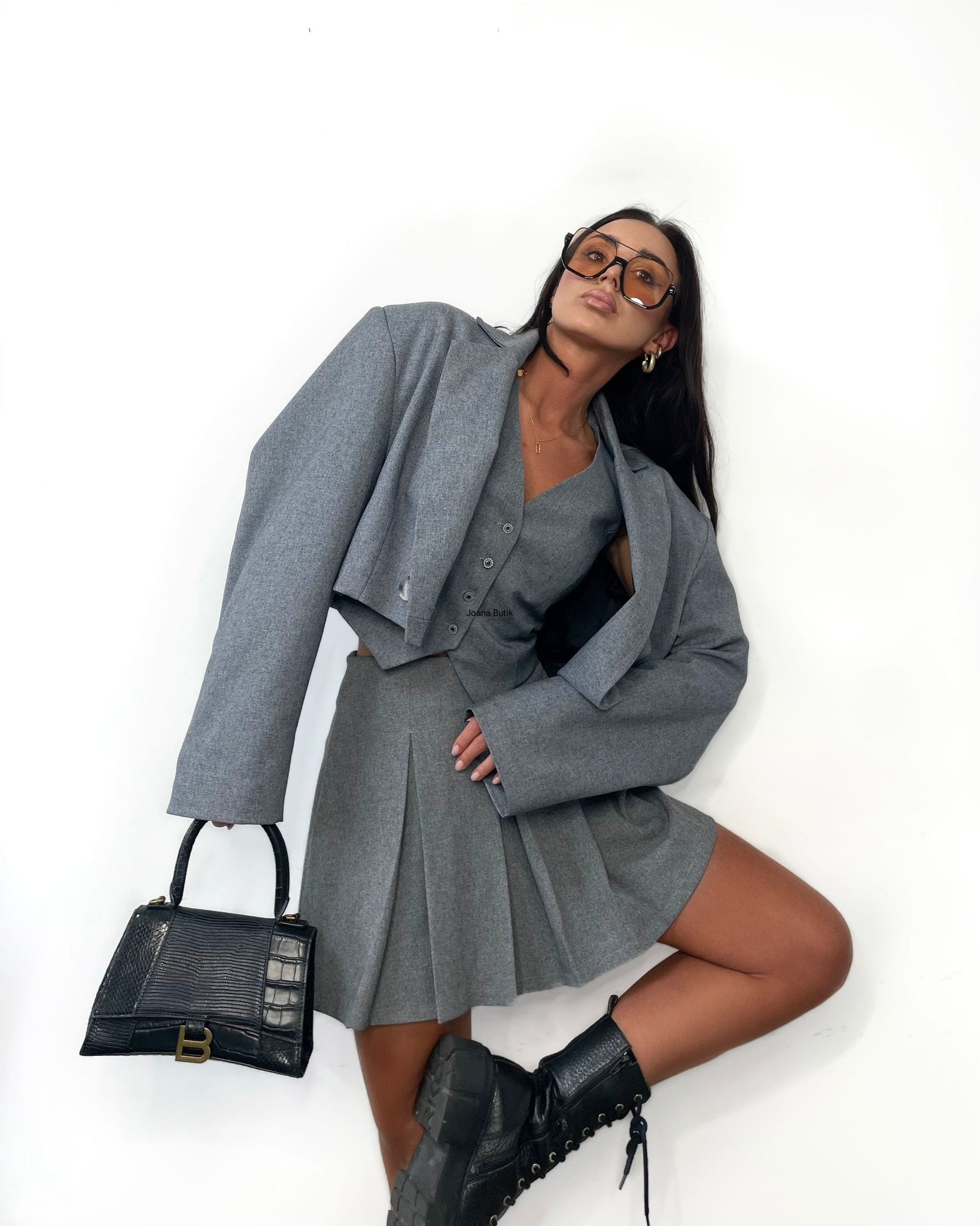 Skład: 50% poliester, 40% wiskoza, 10% elastan Spódniczko-spodenki Jackancy grafitowe to modny model, z którym stworzysz zarówno letnie jak i jesienne stylizacje. Spodenki zagwarantują komfort noszenia a plisowany przód imitujący spódniczkę nada fasonu i klasy. Rewelacyjnie będzie wyglądać w połączeniu z marynarką a także na sportowo z bomberką i ulubionymi sneackers'ami. Wymiary XS: Długość całkowita: 39 cm Długość nogawki: 5 cm Wysokość stanu: 34 cm Obwód w pasie: 62 cm Obwód w biodrach: 94 cm Wymiary S: Długość całkowita: 40 cm Długość nogawki: 6 cm Wysokość stanu: 34 cm Obwód w pasie: 66 cm Obwód w biodrach: 98 cm Wymiary M: Długość całkowita: 41 cm Długość nogawki: 6 cm Wysokość stanu: 35 cm Obwód w pasie: 70 cm Obwód w biodrach: 102 cm Wymiary L: Długość całkowita: 41 cm Długość nogawki: 6 cm Wysokość stanu: 35 cm Obwód w pasie: 72 cm Obwód w biodrach: 108 cm Ubrania mierzone na płasko! Poszczególne wymiary mogą różnić się +/- 2 cm. Produkt polski.