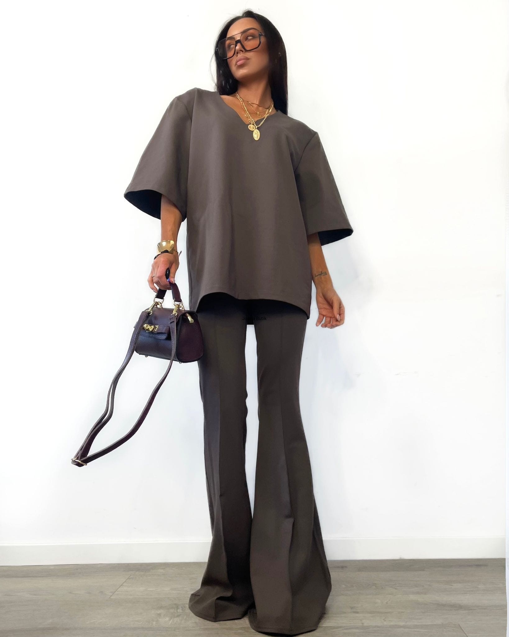 Skład: 50% poliester, 40% wiskoza, 10% elastan Spodnie Vibes elegant czarne charakteryzują się dopasowanym krojem oraz szerszymi nogawkami. Ten model podkreśli kobiece kształty i pozwoli na stworzenie wielu modnych stylizacji. Wyższy stan zaznaczy talię. Nogawka rozszerzana od kolan w dół. Zapięcie regulowane na zamek po boku. Wymiary XS: Długość całkowita: 118 cm Długość nogawki: 87 cm Wysokość stanu: 32 cm Obwód w pasie: 66 cm Obwód w biodrach: 80 cm Wymiary S: Długość całkowita: 119 cm Długość nogawki: 88 cm Wysokość stanu: 33 cm Obwód w pasie: 68 cm Obwód w biodrach: 84 cm Wymiary M: Długość całkowita: 120 cm Długość nogawki: 89 cm Wysokość stanu: 34 cm Obwód w pasie: 72 cm Obwód w biodrach: 90 cm Wymiary L: Długość całkowita: 121 cm Długość nogawki: 90 cm Wysokość stanu: 34 cm Obwód w pasie: 80 cm Obwód w biodrach: 98 cm Ubrania mierzone na płasko! Poszczególne wymiary mogą różnić się +/- 2 cm. Produkt polski.