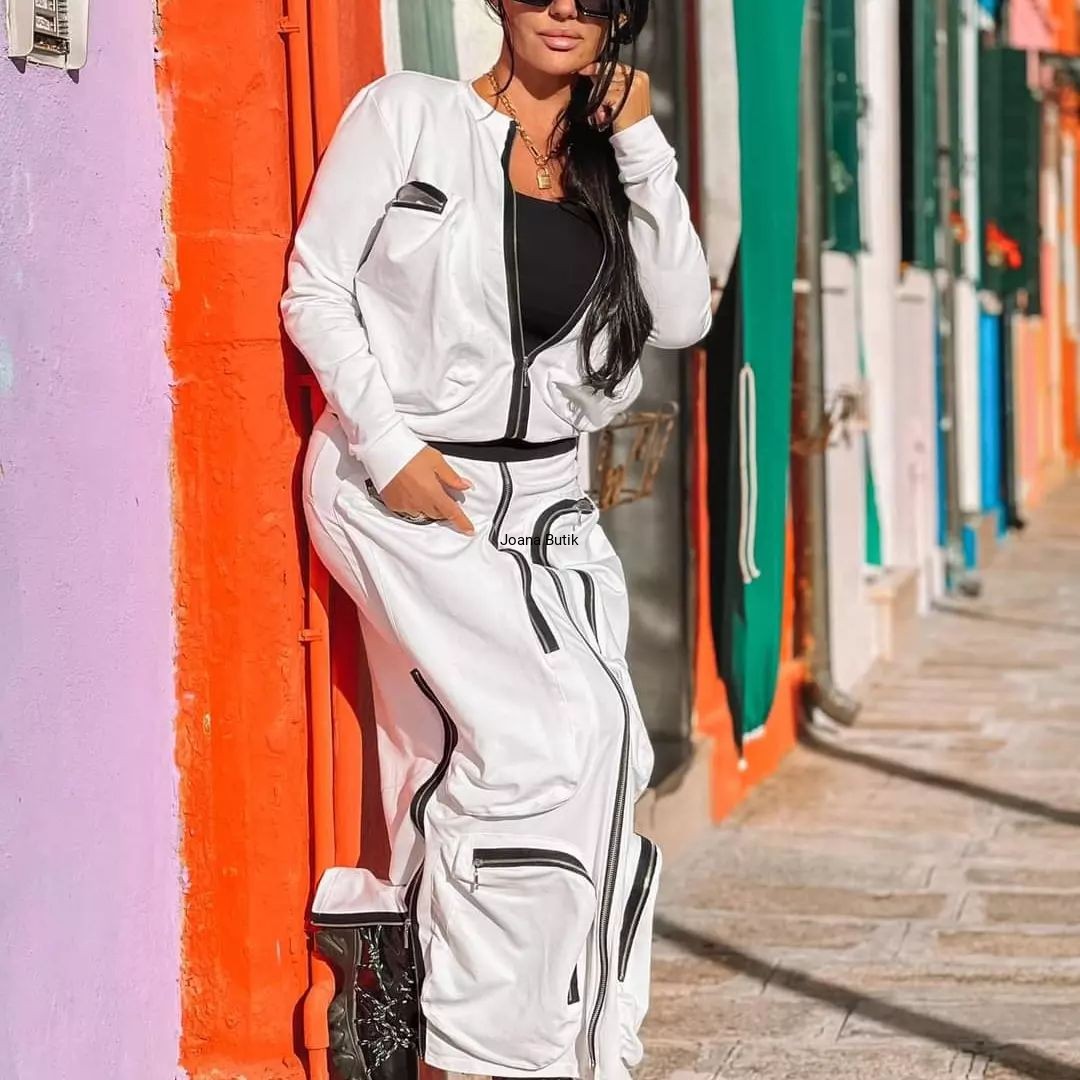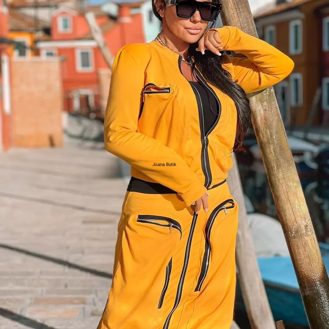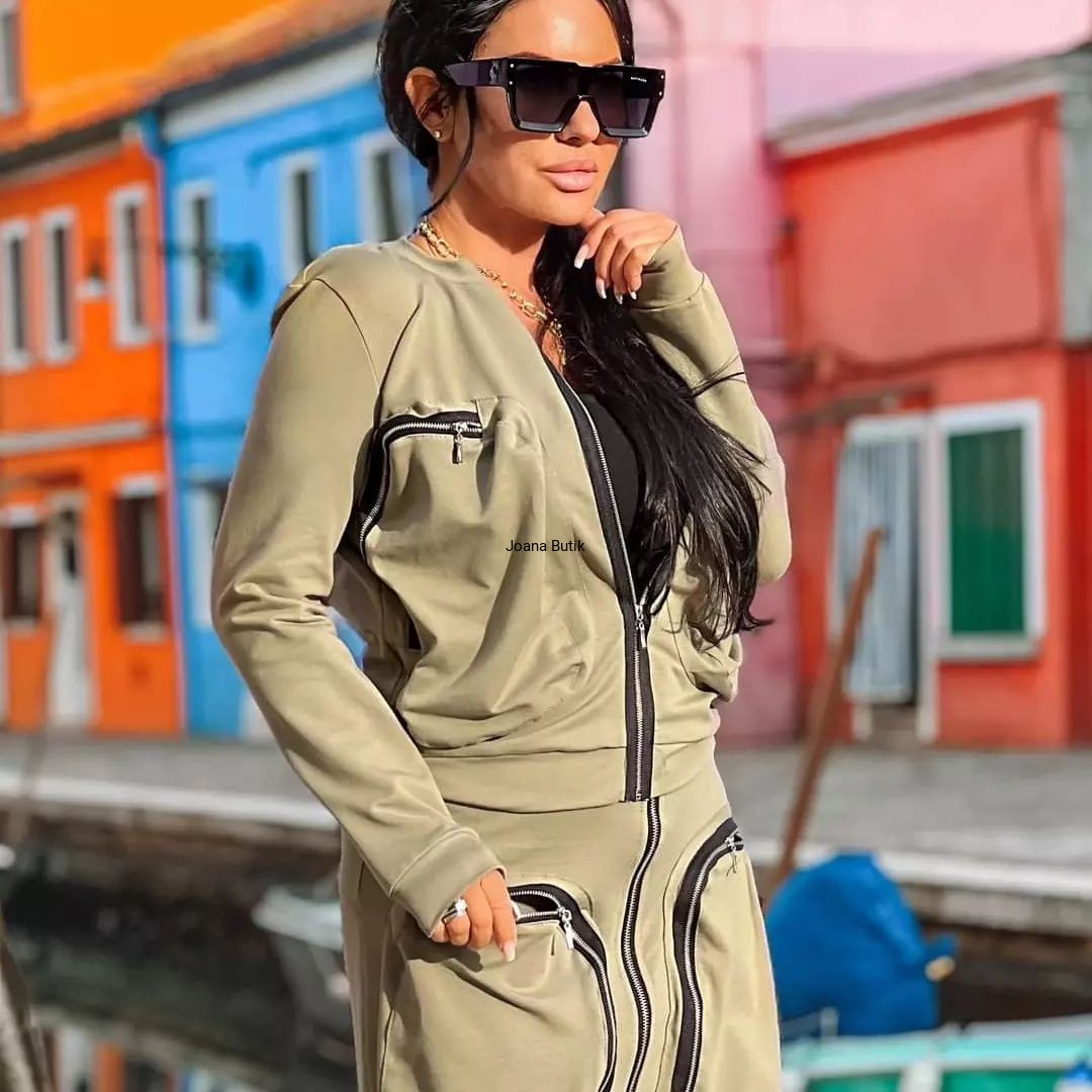 Sportowy komplet bluza i spódnica z zamkami Zocco