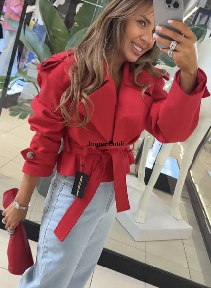 Stylowy, krótki płaszcz w oversize'owym kroju, który zapewnia maksymalny komfort i swobodę noszenia. Wyposażony w pasek do wiązania, podkreśla talię i dodaje sylwetce nowoczesnego charakteru. Materiał 100% Bawełna, Podszewka - 100%Poliester