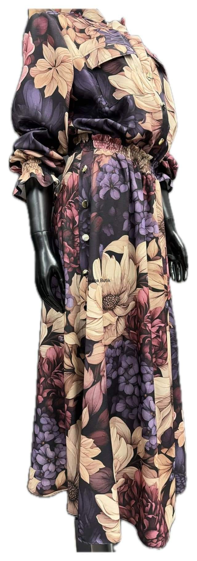 Skład:70% wiskoza, 30% poliester Sukienka o długości maxi. Miękka, lejąca się tkanina o gładkim wykończeniu. Ściągacz w pasie oraz przy rękawach. Dekolt regulowany zapięciem przy pomocy złotych guzików. Kieszonki na wysokości dekoltu. Wymiary S: Długość całkowita: 130 cm Obwód w biuście: 104 cm Obwód w pasie: od 34 cm do 90 cm po rozciągnięciu Obwód w biodrach: 118 cm Długość rękawa od ramienia: 59 cm Długość rękawa od pachy: 44 cm Wymiary M: Długość całkowita: 130 cm Obwód w biuście: 106 cm Obwód w pasie: od 38 cm do 94 cm po rozciągnięciu Obwód w biodrach: 126 cm Długość rękawa od ramienia: 59 cm Długość rękawa od pachy: 44 cm Wymiary L: Długość całkowita: 130 cm Obwód w biuście: 114 cm Obwód w pasie: od 44 cm do 108 cm po rozciągnięciu Obwód w biodrach: 132 cm Długość rękawa od ramienia: 59 cm Długość rękawa od pachy: 44 cm Ubrania mierzone na płasko! Poszczególne wymiary mogą różnić się +/- 2 cm. Produkt polski.