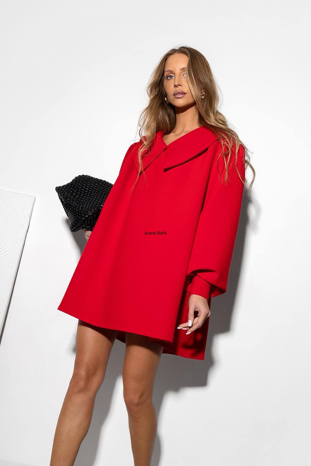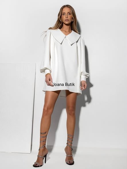 Elegancja w najczystszej formie. oversize’owa sukienka o architektonicznym kroju zachwyca nowoczesną linią i subtelnym luksusem. Szeroki kołnierz dodaje jej szyku, a bufiaste rękawy tworzą efektowną sylwetkę. To model, który łączy minimalizm z wyrazistym stylem.