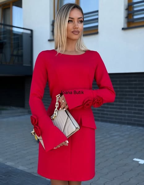 Sukienka mini z ozdobnymi różami na rękawach Sofi Marina