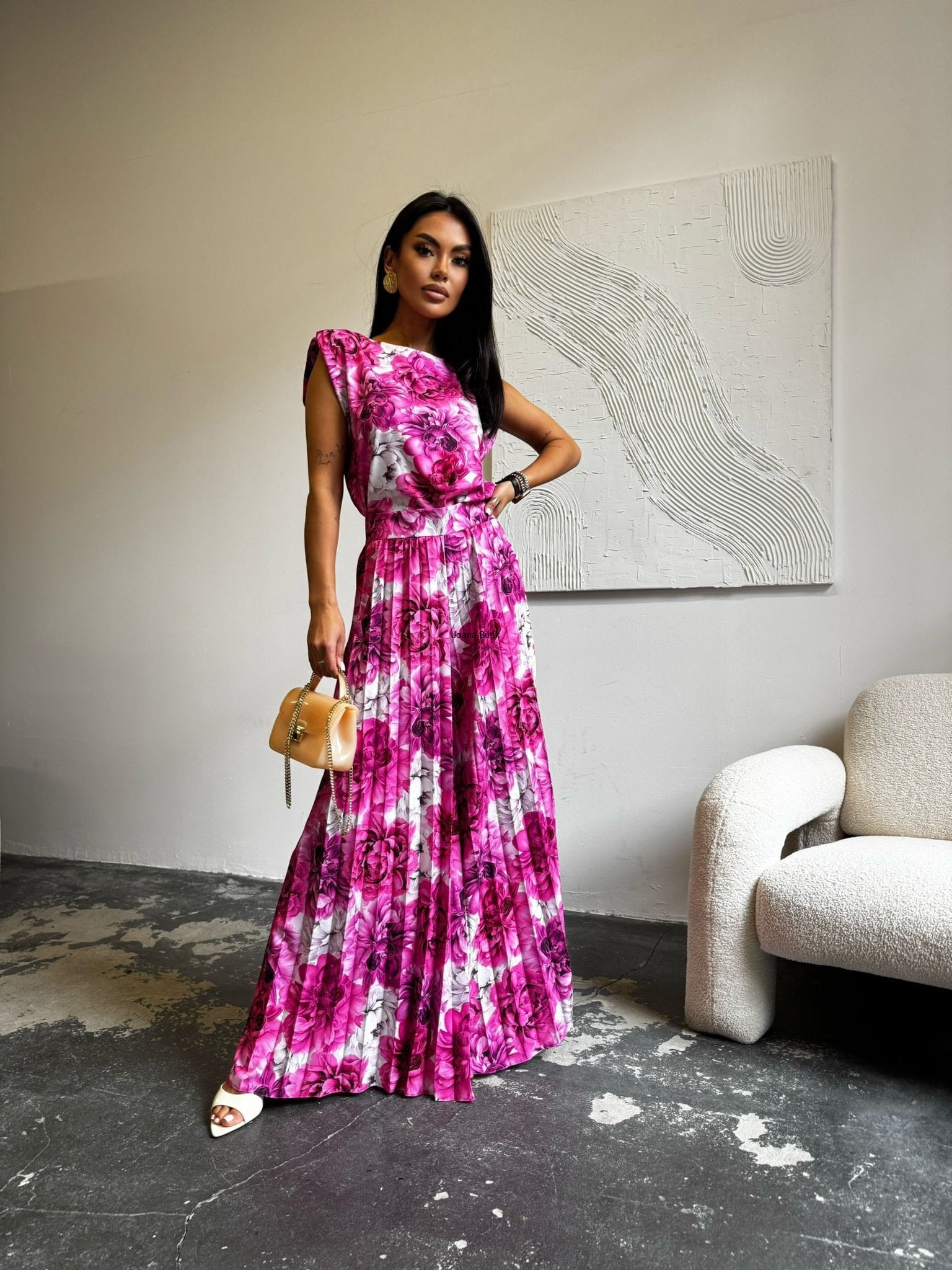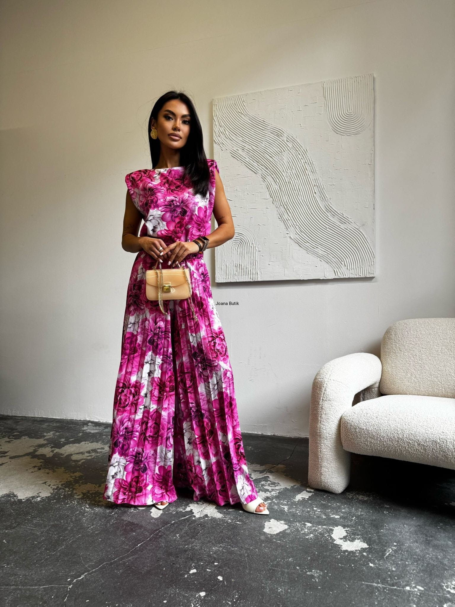 Szerokie spodnie plisowane w kwiaty Edan