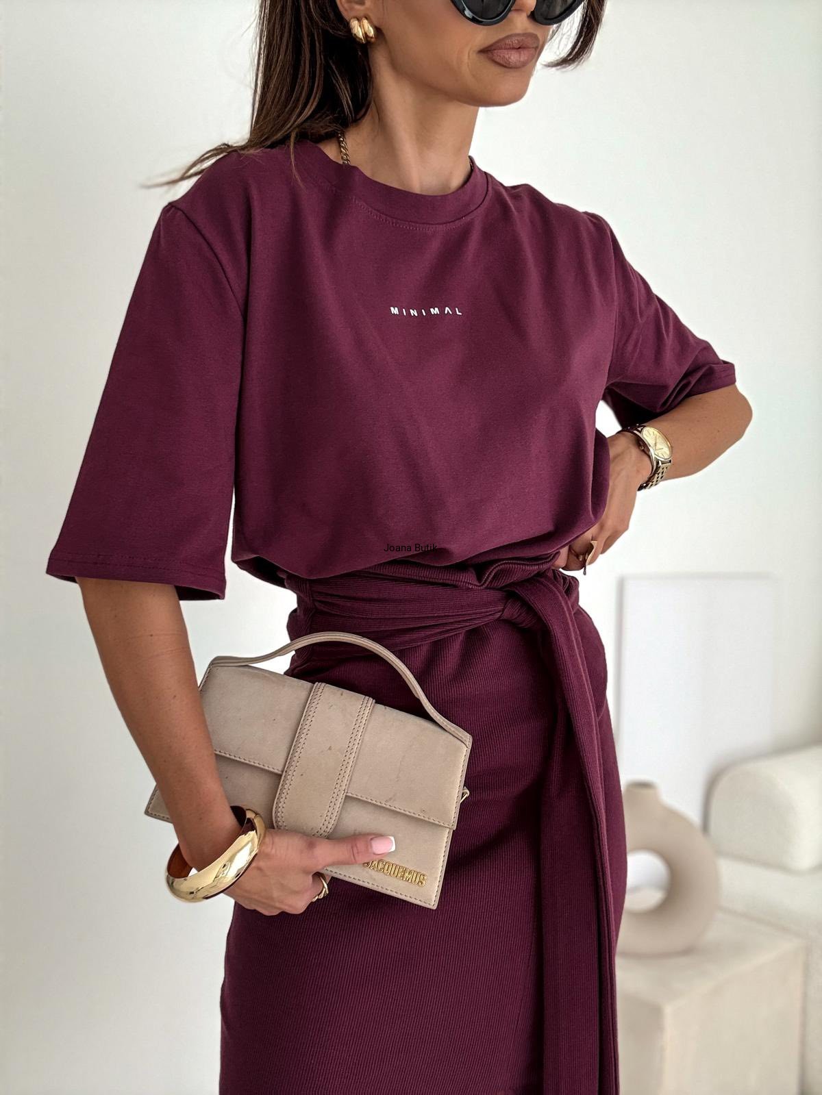Skład: 95% bawełna, 5% elastan T-shirt Minimal czarny wykonany jest z gładkiej tkaniny. Posiada minimalistyczne zdobienie w postaci nadruku. Luźniejszy krój zagwarantuje komfort noszenia. Wymiary: Długość całkowita: 66 cm Obwód w biuście: od 108 cm do 124 cm po rozciągnięciu Obwód w pasie: od 108 cm do 130 cm po rozciągnięciu Długość rękawa od ramienia: 29 cm Długość rękawa od pachy: 15 cm Ubrania mierzone na płasko! Poszczególne wymiary mogą różnić się +/- 2 cm. Produkt polski.
