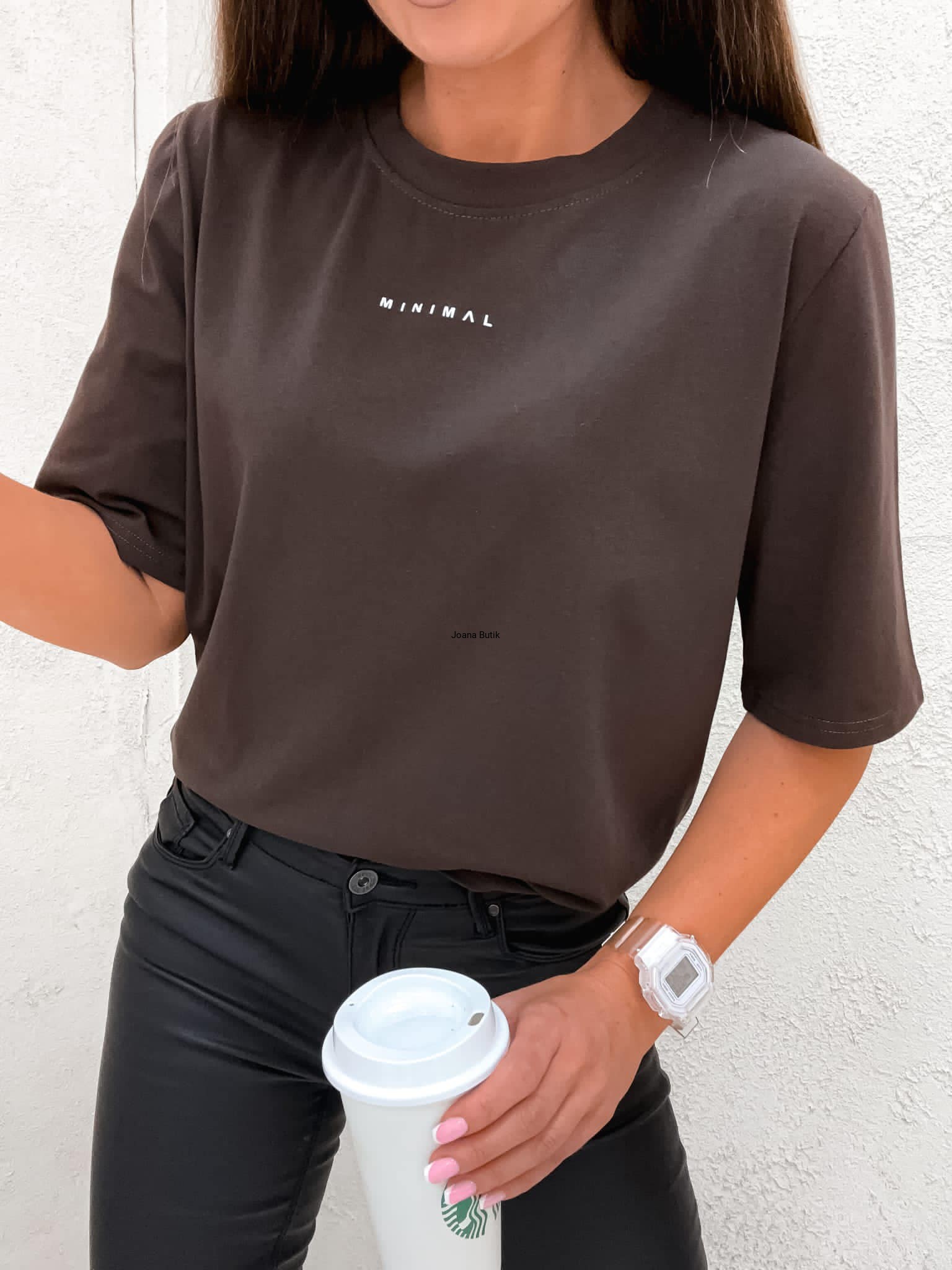 Skład: 95% bawełna, 5% elastan T-shirt Minimal czarny wykonany jest z gładkiej tkaniny. Posiada minimalistyczne zdobienie w postaci nadruku. Luźniejszy krój zagwarantuje komfort noszenia. Wymiary: Długość całkowita: 66 cm Obwód w biuście: od 108 cm do 124 cm po rozciągnięciu Obwód w pasie: od 108 cm do 130 cm po rozciągnięciu Długość rękawa od ramienia: 29 cm Długość rękawa od pachy: 15 cm Ubrania mierzone na płasko! Poszczególne wymiary mogą różnić się +/- 2 cm. Produkt polski.