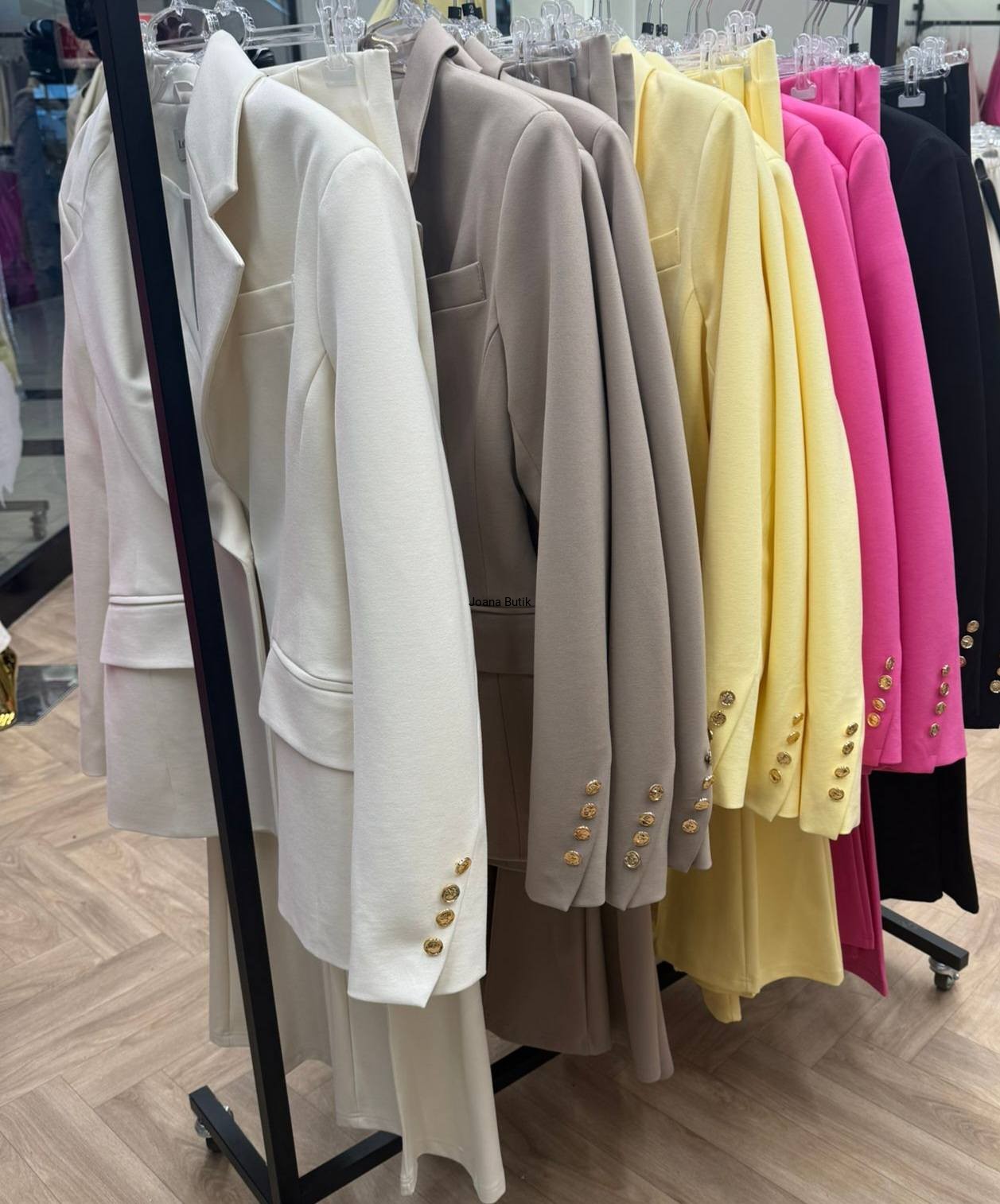 Marynarka od Lavestino. Marynarka o lekko oversize’owym kroju, pięknie podkreślająca talię Klasyczne klapy, złote guziki i perfekcyjne wykończenie dodają jej elegancji Minimalizm w luksusowym, power suit wydaniu – idealna na co dzień i na wyjątkowe okazje Polski producent odzieży damskiej Lavestino Skład: 70%poliester, 25% nylon, 5% elastan Rozmiar S Szerokość miedzy pachami 48cm x2 Szerokość w talii 40cm x2 Szerokość na dole 56cm x2 Długość rękawa od ramienia 64cm Długość rękawa od pachy 48cm Długość 72cm Rozmiar M Szerokość miedzy pachami cm x2 Szerokość w talii cm x2 Szerokość na dole cm x2 Długość rękawa od ramienia cm Długość rękawa od pachy cm Długość cm Rozmiar L Szerokość miedzy pachami cm x2 Szerokość w talii cm x2 Szerokość na dole cm x2 Długość rękawa od ramienia cm Długość cm