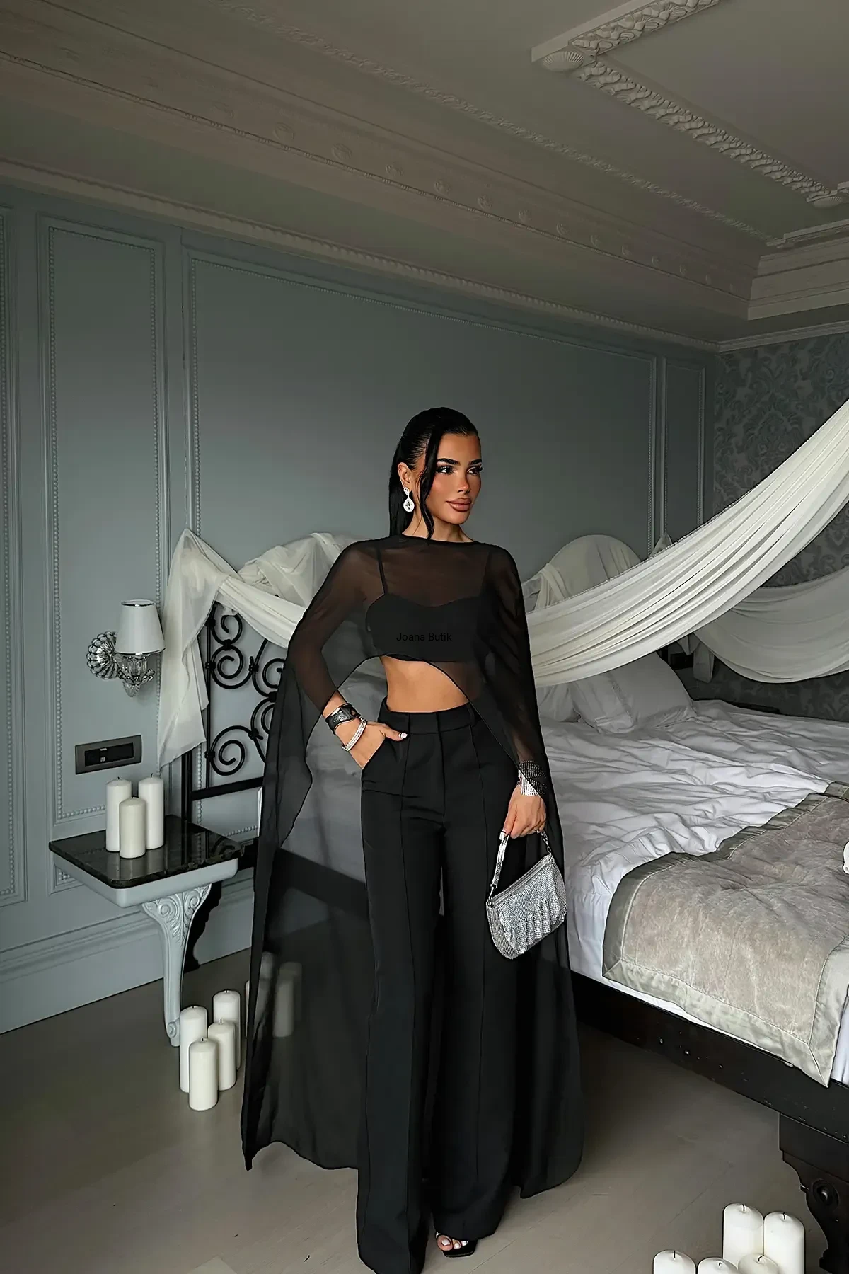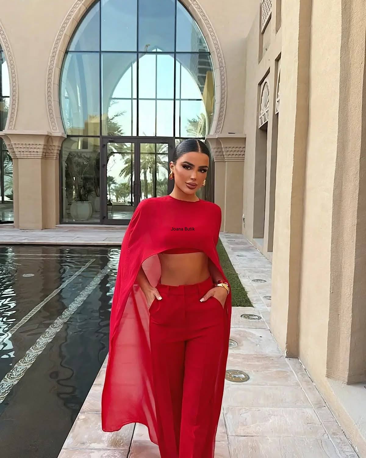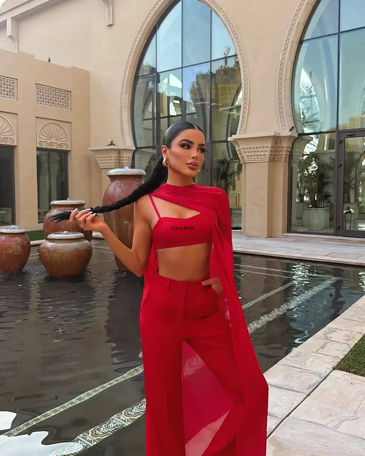 Zmysłowy, trzyczęściowy komplet dostępny w klasycznej czerni oraz intensywnej czerwieni. To model, który przyciąga spojrzenia od pierwszej sekundy – mocny, kobiecy i wyrazisty. Transparentna peleryna z lekkiego szyfonu tworzy efekt ruchu i luksusu, nadając stylizacji wyjątkowego, wieczorowego charakteru. Top podkreśla sylwetkę, a spodnie z wysokim stanem i szeroką nogawką wydłużają proporcje i dodają elegancji. komplet 3-częściowy peleryna z transparentnego szyfonu spodnie wide leg – efekt wydłużenia sylwetki Idealny na eventy, kolacje, wieczorne wyjścia. Look, który sprzedaje się sam — premium, odważny i totalnie „it girl”.